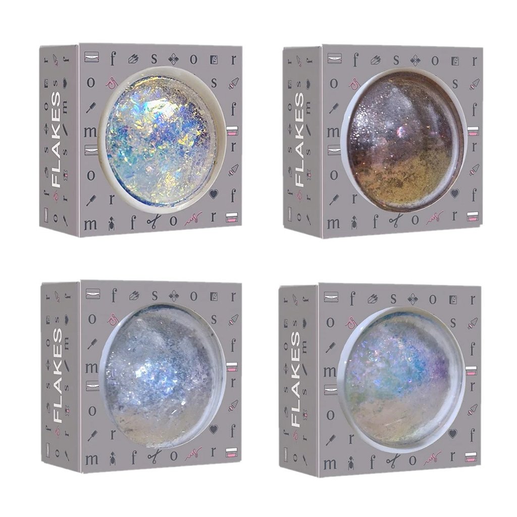 Flakes Forms, pigmento em formato flake com alta pigmentação e brilho.